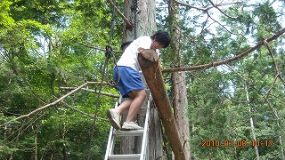 7月8日は、池廻りで皮むき作業の続きと、釣り、ターザンロープで楽しんだ後、やかまし窯のピザを体験しました。