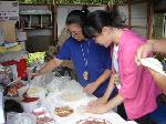 お昼ご飯は、焼きそばとピザ。焼きそばは皆で手分けしててきぱきと作っていました。チームワークがよく、皆とてもよい子です。