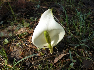 釜近くの水芭蕉 |