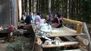 今日は、午前の作業の後、村長・育・千が準備してくれた炊きこみご飯と豚汁でお昼ご飯を食べました。やかまし窯に設置したガス炊飯器の「釜開き」として初めて炊きこみご飯を作りました。とても調子が良いです。