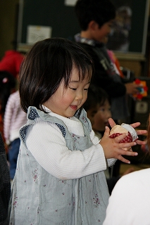 くす玉からお菓子が・・・ |