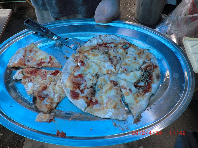 お昼はやかまし窯でピザと焼きそば。気温が思ったより低く、生地の発酵が不調でしたが、どうにか美味しいピザが食べられました。
